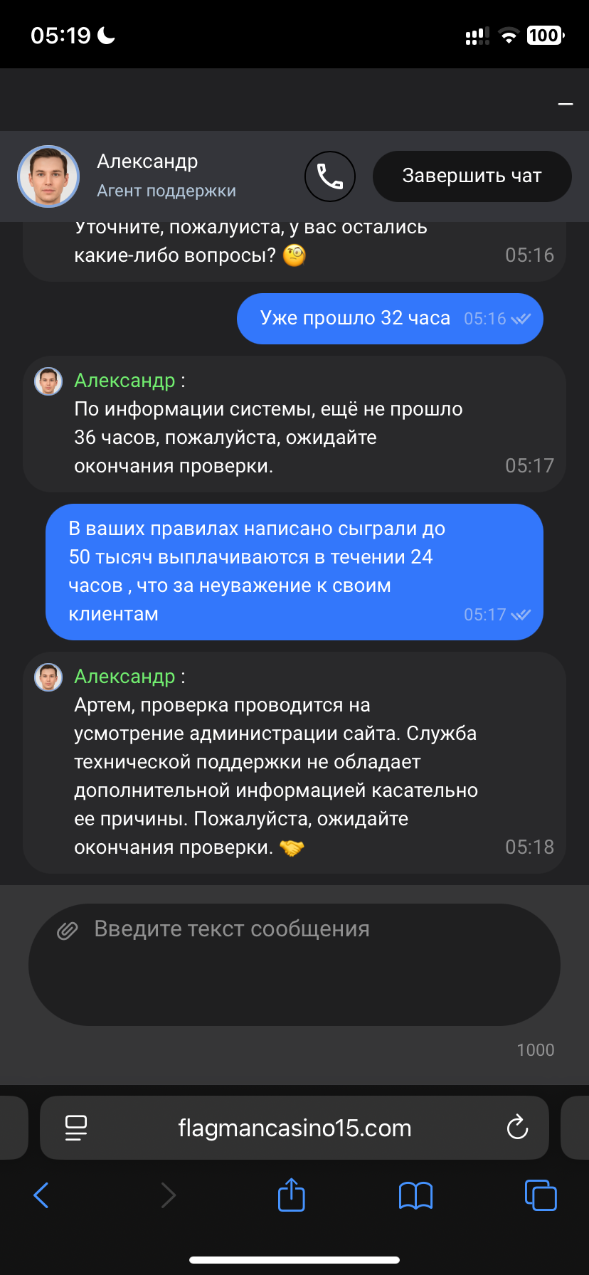 Я Всем привет, тоже решил сыграть во флагмане начал с 4 июня , первый выигрыш отыграл их кешбек и поставил на выплату 8тысяч , выплатили часов за 6, второй раз сидя на работе 6июня решил еще раз сыграть , закинул в общей сложности 13 тысяч и на последних 500 рублей словил бонус и выигрыш в 20тысяч , и тут началось самое интересное , отыграл весь их кешбек поставил на выплату сначала 20 и еще 5 , и все так и висит , поддержка кормит историями про проверку на 36 часов , ладно ждем хотя прошло уже 32 часа ответы все те же ждите. Выплату так и не подтвердили.