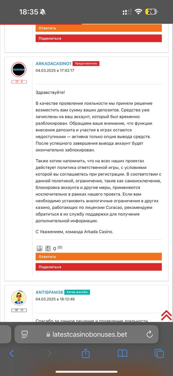 К новому году сливается остаток сбережений, примерно 1.3кк рублей и наступает полный тильт. Общаюсь с друзьями, и мне напоминают про форум Латест, как последняя надежда вернуть какие-то средства, чтобы можно было существовать. Захожу, скроллю жалобы, о чудо, есть жалоба по зависимости от той же сетки, где представители в своих ответах четко дают понять, что если были запросы и они были проигнорированы, можно вернуть деньги. + аналогичная жалоба, где игроку вернули средства за 14!!! Дней, а он даже не предупреждал о зависимости, только в других проектах сетки)