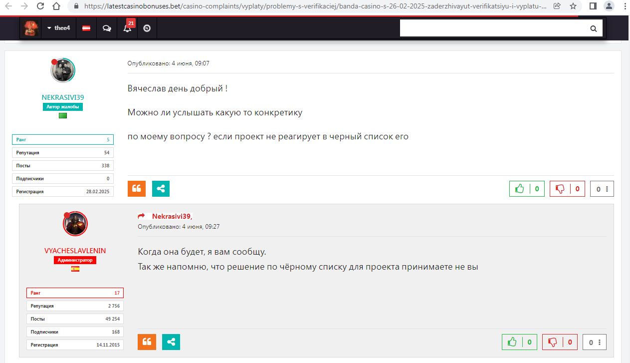 @gans2115 да неприятно было , просто хочется какой то конкретики с февраля месяца . Мол отвечает , на такой то стадии решение вопроса или не отвечает ушел в игнор , такие бы простейшие фразы дали понять . Но так же не понимаю , если казино кидает на такие деньги то почему их нельзя чс добавлять , понижение рейтинга для них это вообще ни о чем !
