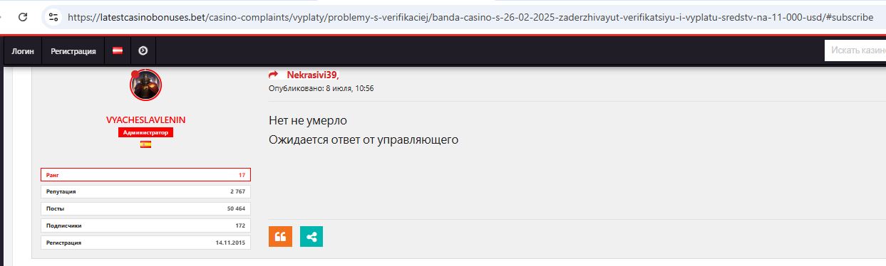 Ясности по решению жалобы пока ни какой нет и это не бонус(как в kЭtk@Z — 5.4KK) и чел занес с депа 15К(3х5К) целый «лям» и ему с февраля так до сих пор таки не выплатили весь выигрыш(нашли мульт — ах…Ь). Хотя он уже был согласен получить хотя бы половину, но это «Б@НД@» ведет себя, как страус на «испуге»!
