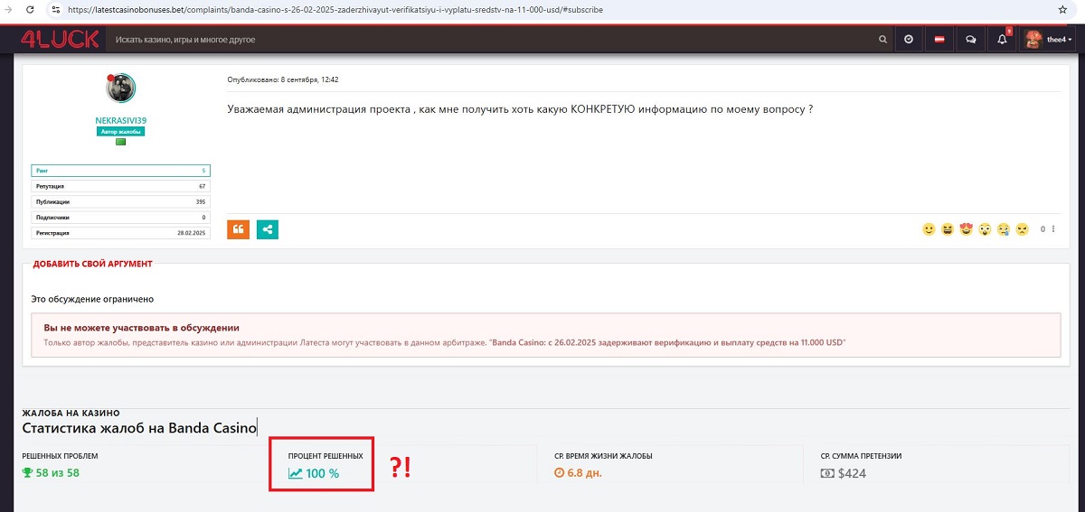Cам не поверил глазам, на Banda C@s.. — 100% решеных жалоб, просто ах… ах…Ъ((( А мы тут стараемся не дать «засохнуть теме»….
