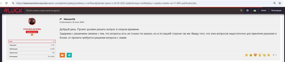 Вижу в этой ветке написали много и по делу и разного…. Пожалуй надо вернуться к крайнему ответу нашего админа занимающегося жалобами на казино