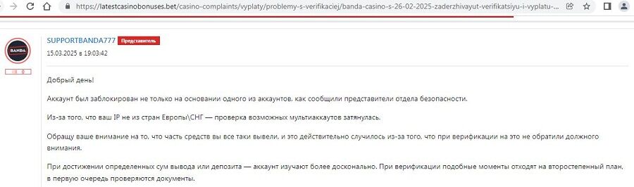 надеюсь выведут , но вот наткнулся на решенную жалобу один в один ситуация)) Banda Casino: ссылаясь на мониторинг не выводят средства на 5000 USD 🍀 LatestCasinoBonuses