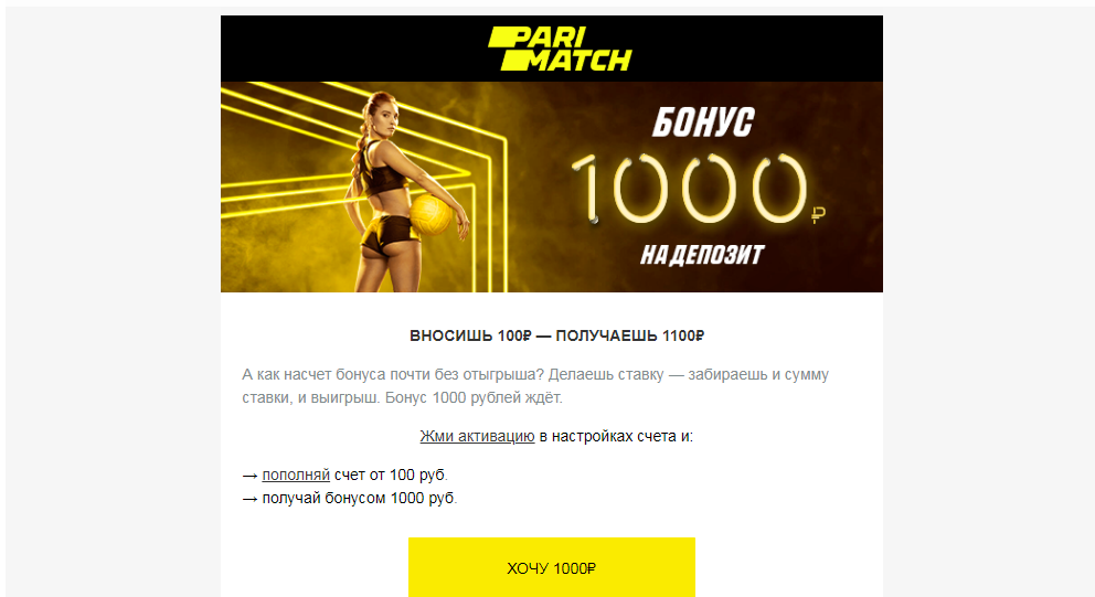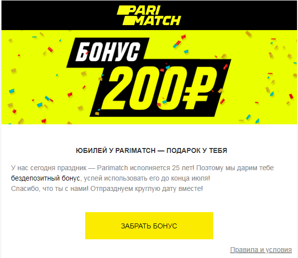 Сегодня пришла рассылка от Parimatch Проверяйте свои почты.