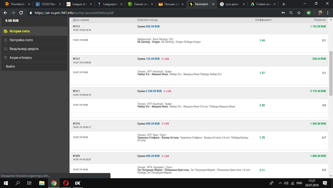 Всем привет, вообще вчера Париматч (Зарубежный) прислал фрибет 800 руб, с отыгрышем 5х, ну я и начала отбивать, соответственно я его быстро отыграл, на счету лежало 5170, в настройках посмотрел висит надпись что только отыграно на 96%, связался с саппортом, он объяснил что к чему и сказал что надо ещё сделать ставку на 152 руб и неважно выиграет она или проиграет, что бы бон полностью был отыгран, так же быстро сделал ставочку, потом опять пообщался с саппортом что мол, бон отыгран же, он сказал осталось только сделать деп и можешь выводить средства, я сделал, затем быстро ставочку, даже если я свои проиграю то как бы я не в минусе буду потому что смогу сразу вывести фрибет, моя ставка зашла, сразу поставил на вывод и уснул.