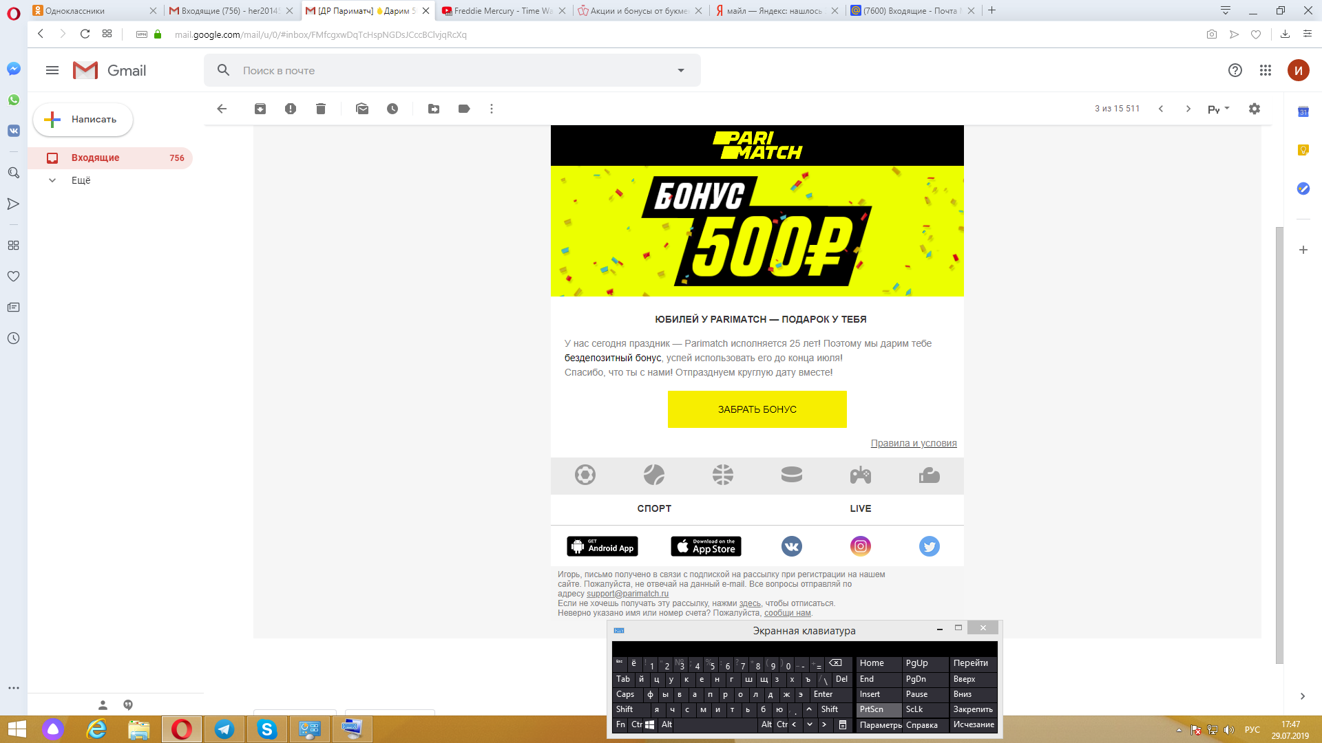 Сегодня тоже прислали пятихатку смс-ой, на почту письма не было.