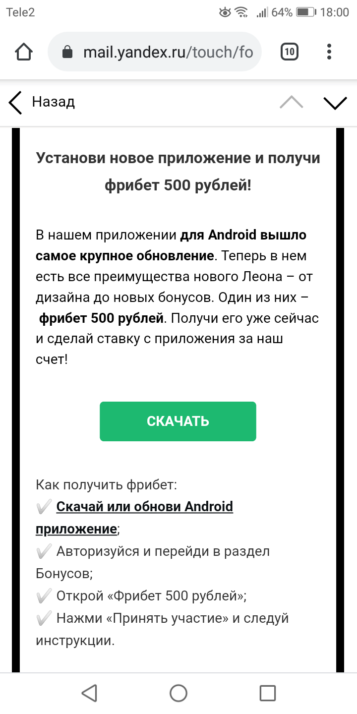 Леон опять раздаёт фрибеты за установку или обновление их мобильного приложения.