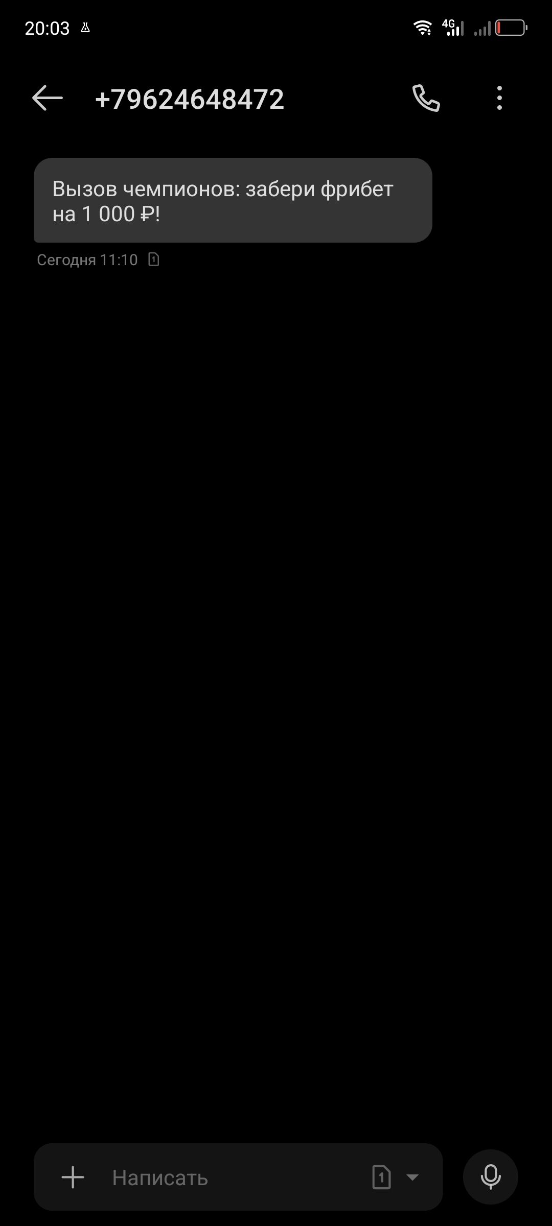 Сегодня пришло, все конторы облазил, фрибета нигде нет, может знает кто мог прислать?
