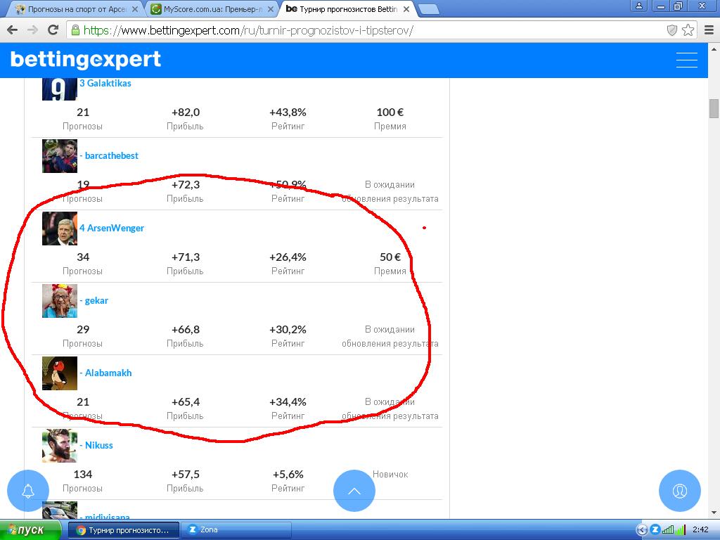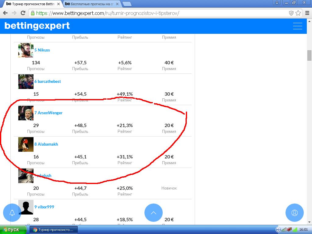 Развернулась жесточайшая борьба за место в топ 20 турнира прогнозиста месяца на bettingexpert €1000 между ArsenomWengerom и IvanomRezko =D