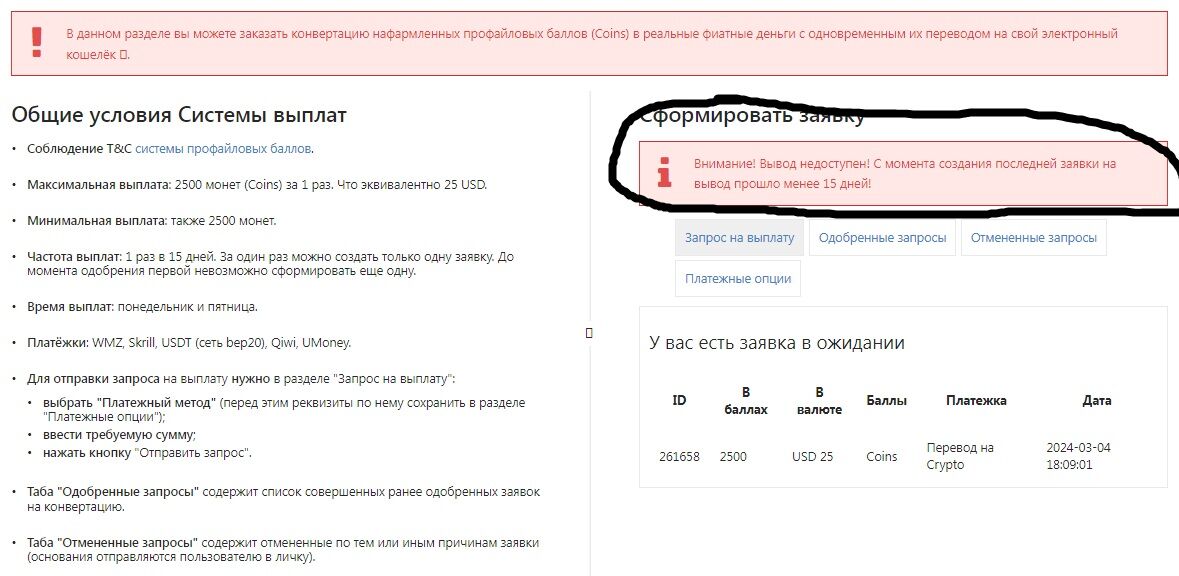 В профиле пишут что вывод невозможен в кеш типа больше 10 баллов предупреждений. Так за прслелний год только 1 раз было предупреждение. Они что копятся эти быллы с момента регистрации и амнистии нет никакой?