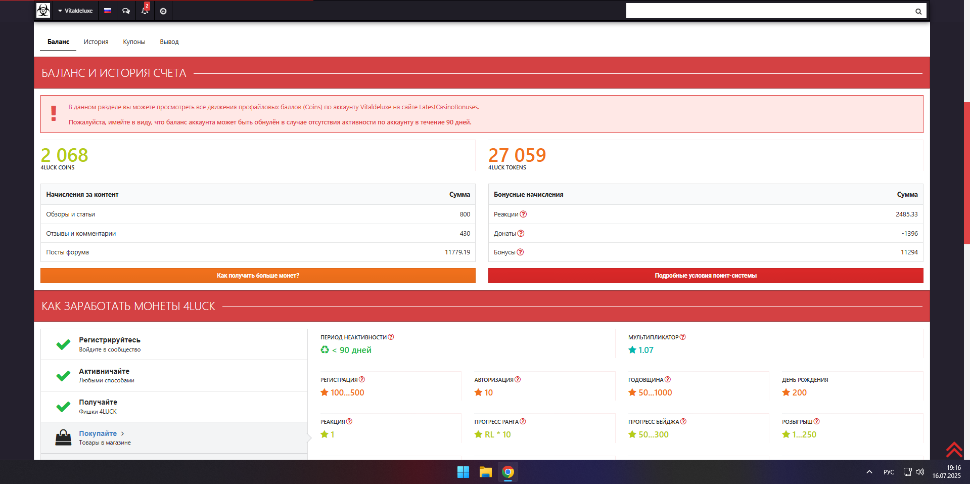 @goldking Я так понимаю, что начисляются поинты, но отображаются они в коинах, которые не все можно вывести(выше уже описывали некоторые моменты, т.к. на день Рождения дают например, то не выведут их, а только за активность на форуме идут в зачет на вывод:)