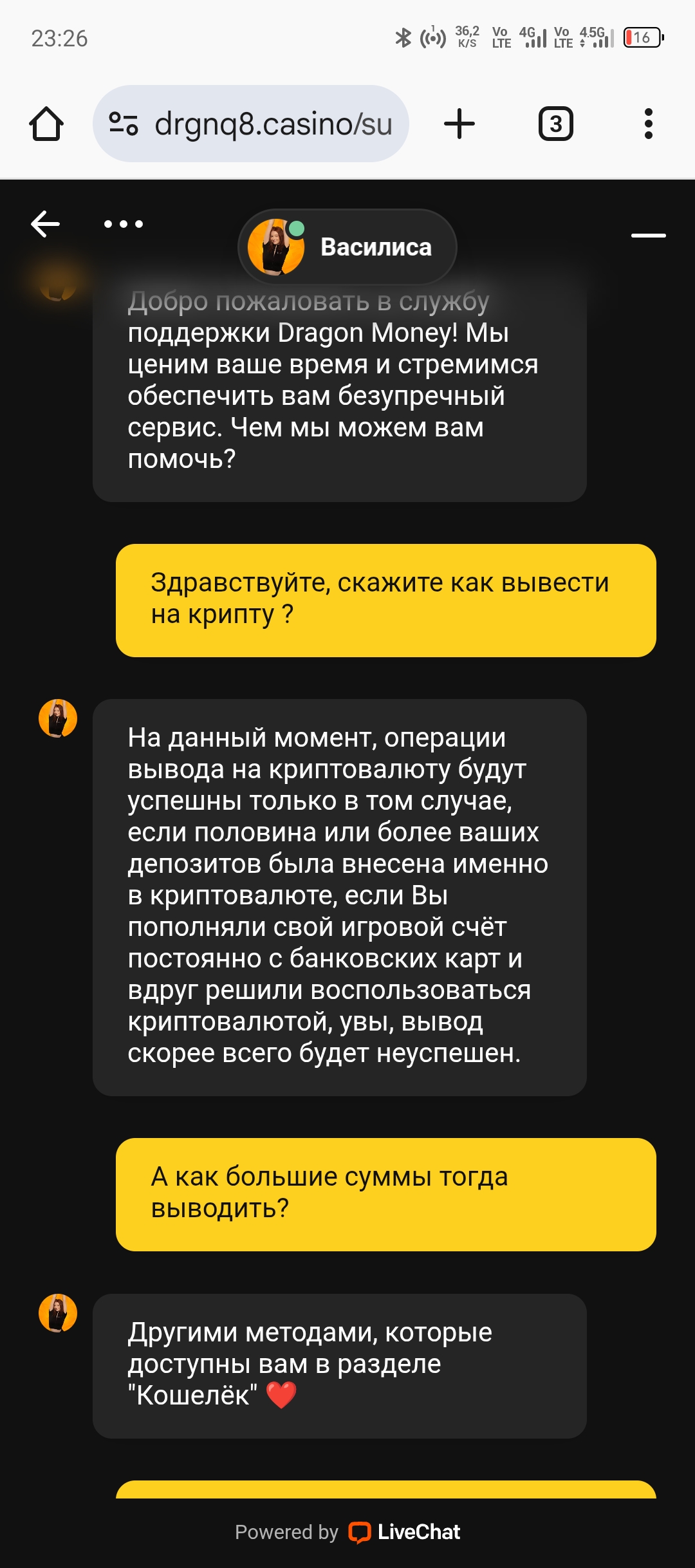 Единственное это либо додепать с крипты столько сколько драгон просит (но не факт что и тут одобрят) либо создать жалобу на латесте в надежде что пойдут на встречу! Есть варик еще сложнее конечно и опаснее… вывести с драгона на пиастру — с пиастры депать в казик где можно будет на крипту выводить, отмывать х3 и выводить на крипту по норм курсу, но там много ЕСЛИ ЕСЛИ ЕСЛИ, а по факту просто можно деп за депом проигрывать…. так что это мысли в слух, чисто мой бред.