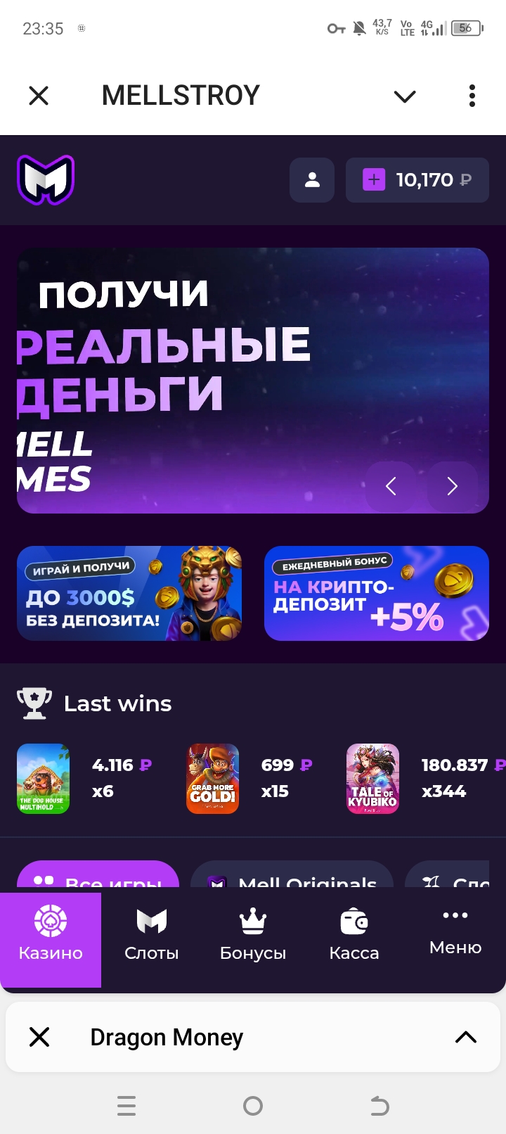 В тг у меллстрой типо казино есть… Дали 5000 рублей… Минимум вывод 10к… 10к на балансе есть, но чтобы вывести, нужно депнуть минимум 5к😂 Вот думаю что это лоханка чистой воды 😁 Депнешь и пиши пропало бабкам😏