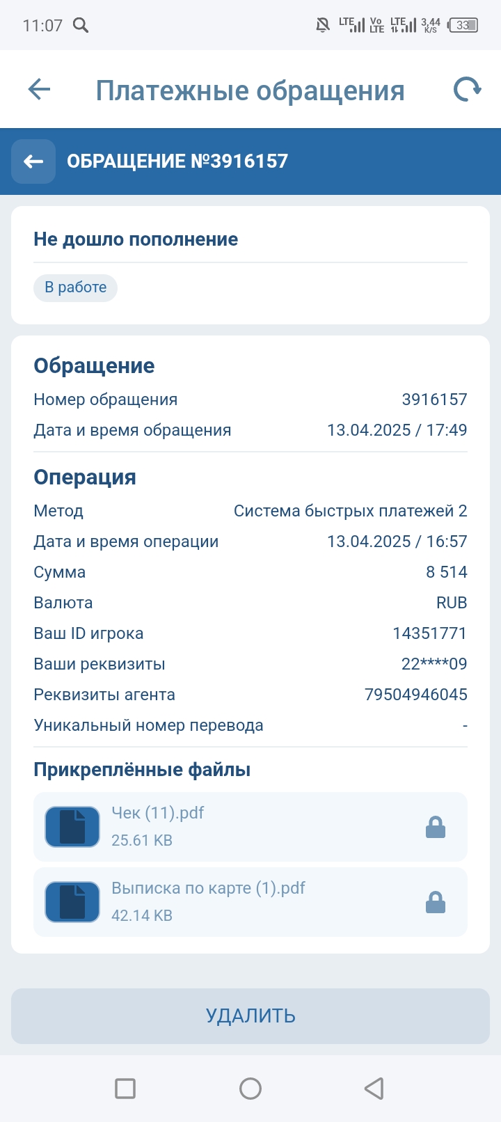 Совершил депозит на сумму 8514 рублей 13.04.2025 через СБП. Деньги не поступили уже месяц ничего не происходит, предыдущие платежные поручения обработали только через пол года и то после жалобы в крюасау, сейчас крюасау не отвечает, и возможно вы сможете помочь