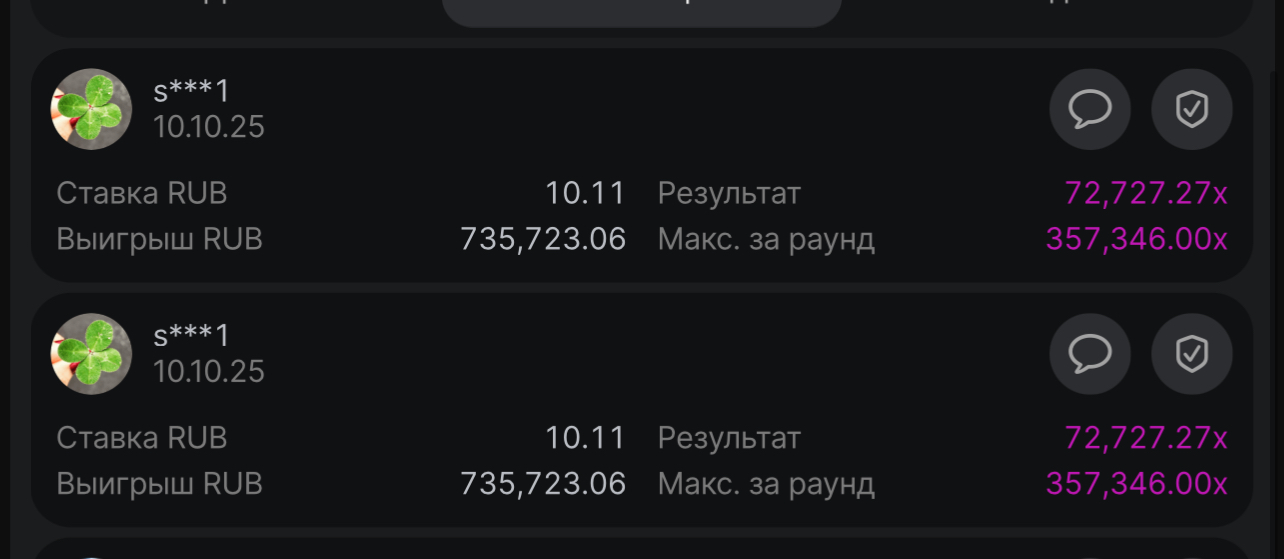 Есть кто в Авиатора играет?) Слот необычный и довольно интересный, поделитесь своими взлетами) вот например на ПД в топе висит такой занос, две ставки по 10₽ на 735к каждая) верить в такое или нет?)лично я недавно пропустил взлет на 3,500х, снял в самом начале, словил небольшой тильт и понял что это игра не для моей нервной системы)