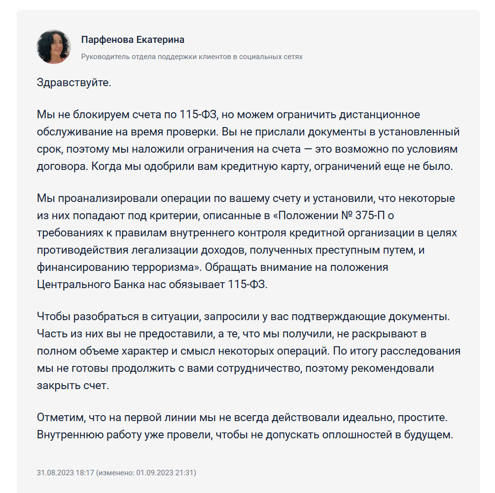 Мне сбер частенько стал задерживать крупные переводы на 24 часа. Озон банк — заблокировал транзакции на месяц за попытку перевода 70 т.р.