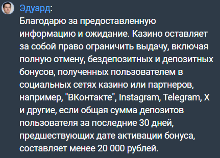 Очередное, бредовое правило от роялов) Теперь в каждом казино нужно за 30 дней депать по 20к, чтобы использовать бездеп которые сами же дают)