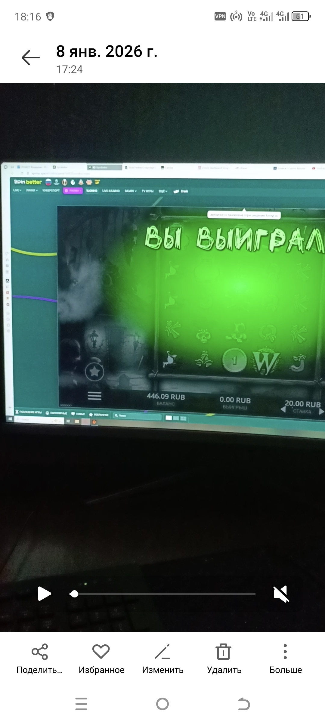 — сайт, приложение или соцсети SpinBetter на экране телефона или ноутбука
