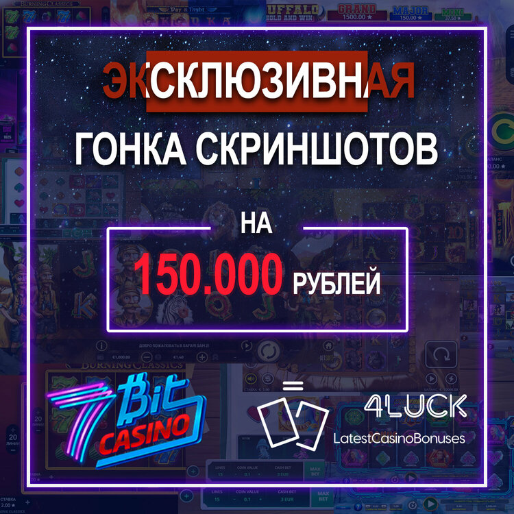 Эксклюзивная гонка скриншотов на 150.000 рублей от 7Bit Casino for 4LUCK