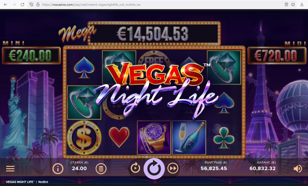 Крупные ставки сулят крупные выигрыши, а иногда и огромные Джекпоты. Пользователь под ником «truedimok«, так же известен в мире онлайн гемблинга, как DimOk — снова устроил охоту на Джекпоты и в этот раз долго ждать не пришлось. В онлайн казино Rox он выиграл джекпот в почти 57 000EUR по ставке в 24EUR.