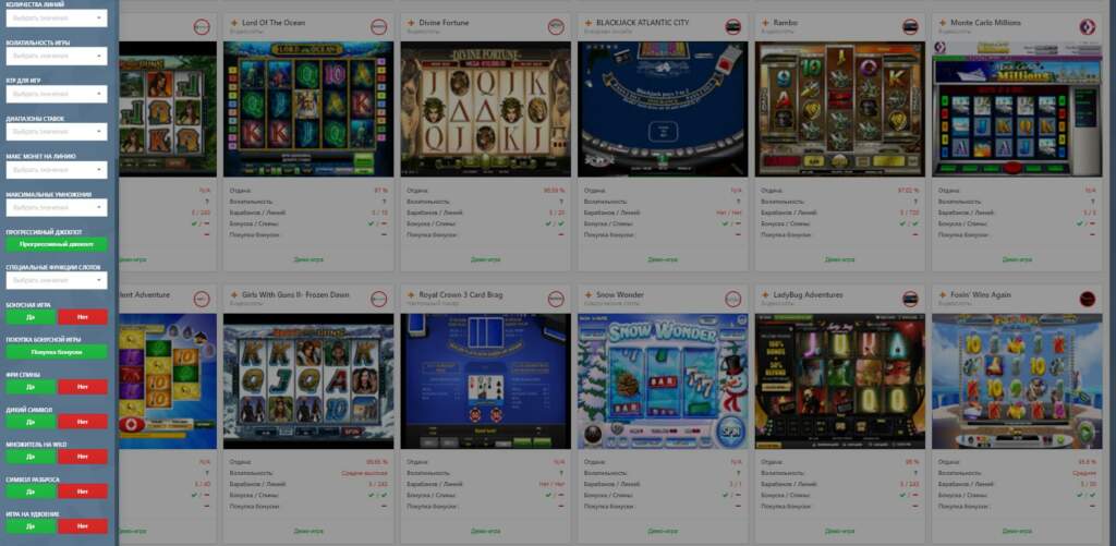 • и ряду других критериев, включенных в поисковой фильтр игровых автоматов.