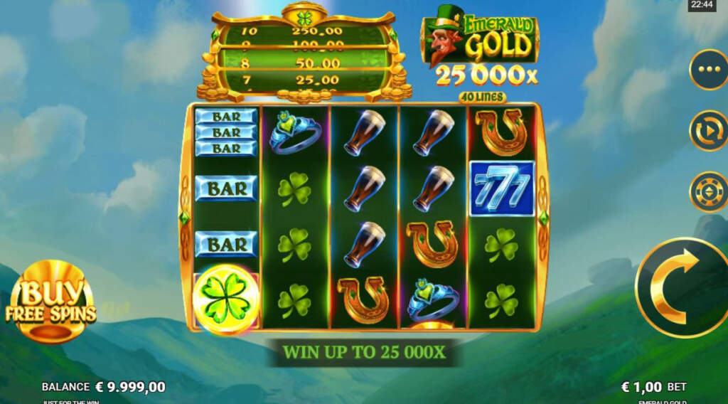 Особенных функций у игрового автомата Emerald Gold не так уж и много. Это выпадение стэйков обычных игорных символов и стэйкивайлдов. Но во время бесплатных вращений происходит накопление бонусных четырехлистников. То есть, для выигрыша джекпота не обязательно выпадение 12 изображений клевера за один спин. Их можно собрать во время нескольких бонусных раундов: сразу предоставляется 3 бесплатных спина и, казалось бы, что это не такое уж и большое преимущество, но следует учесть еще одно приятное условие — при выпадении бонусного символа, количество фриспинов вновь возвращается к трем.😊