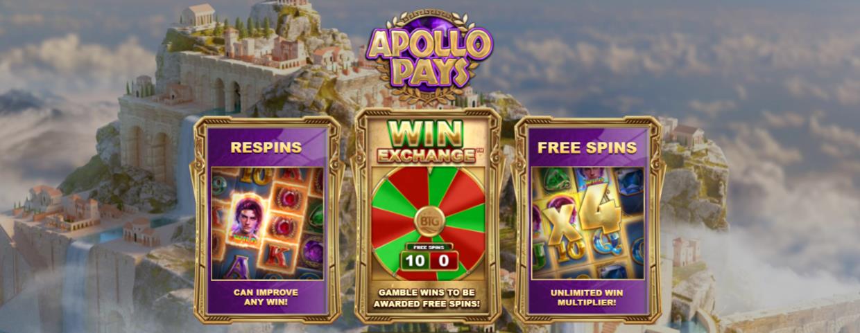 Символы выигрышной комбинации слота Apollo Pays Megaways остаются на месте и игрок получает еще 2 респина, чтобы улучшить результат. А на бонусном этапе в формулу формирования общего приза подключается прогрессивный множитель с безграничным ростом.