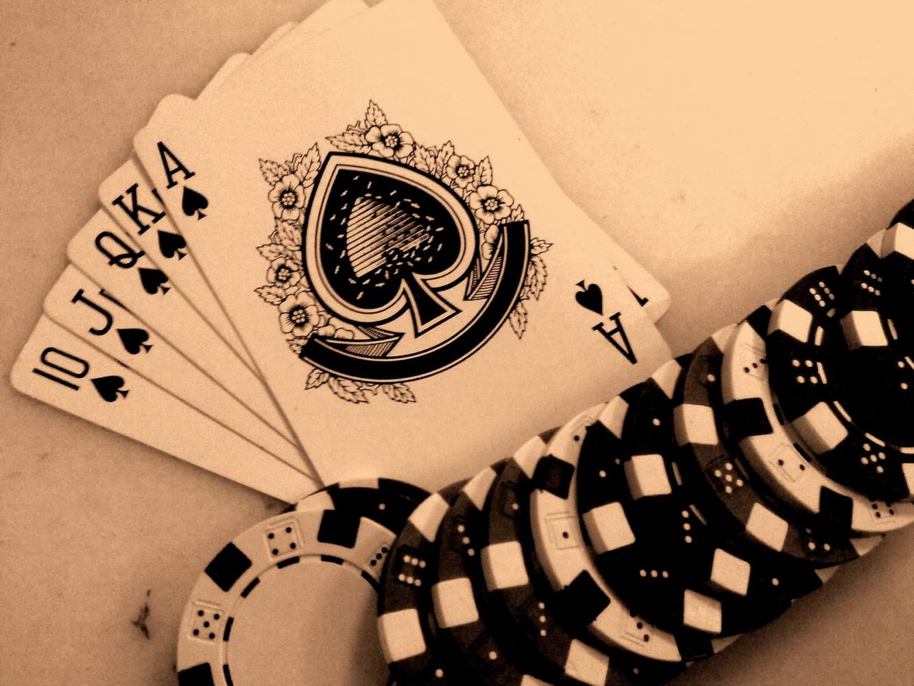 - роял-флэш (royal flush) – в переводе обозначает «королевская масть» и является самой высокой покерной комбинацией, которую составляют 10, J, Q, K, A одной масти.