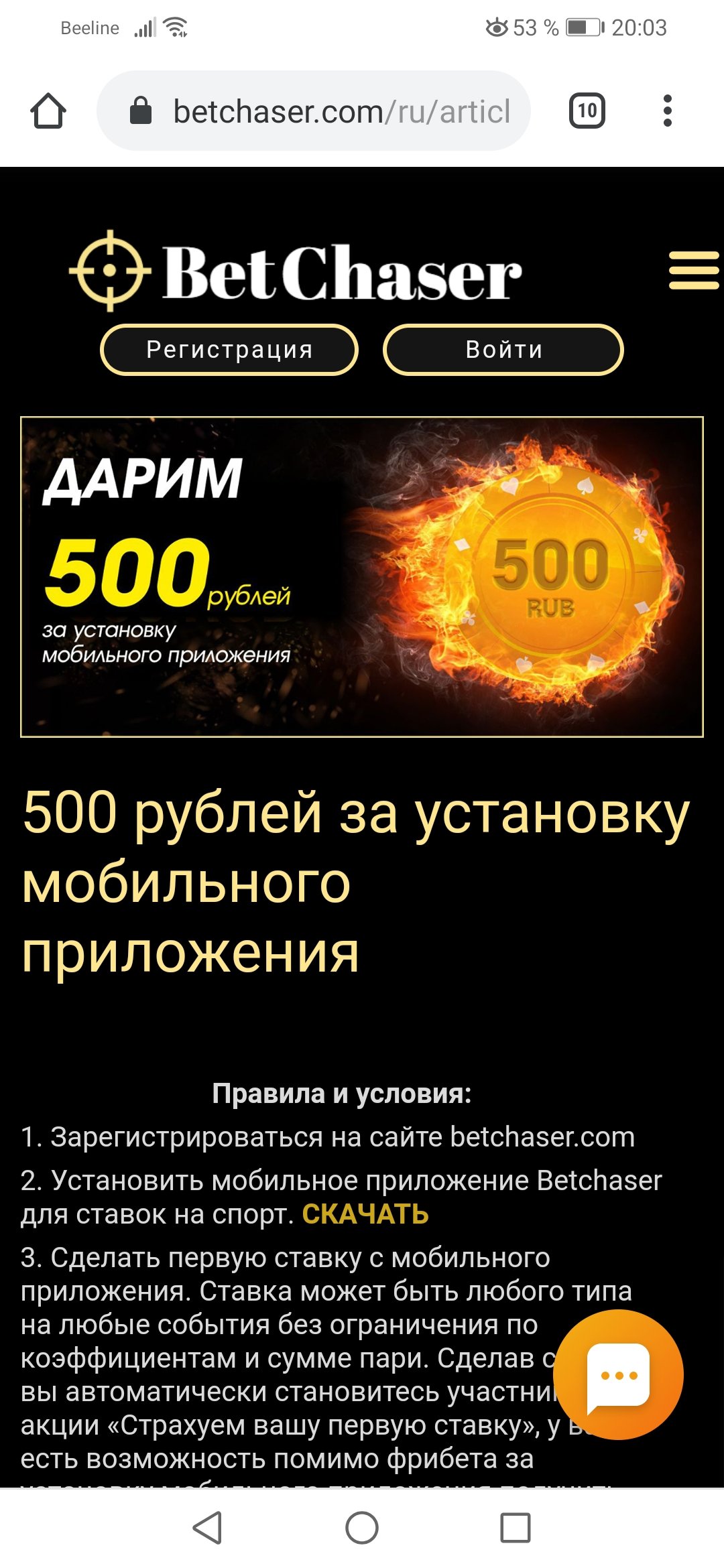 Betchaser даёт бонусы и фртбер за установку мобильного приложения и Верификацию! Подробности читайте у них на сайте!