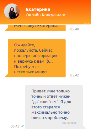 Далее обратился в лайв-чат. Объяснил ситуацию. На что мне ответили: