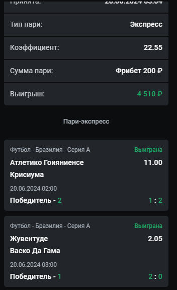 ты не пробовал сразу 2 фрибета одной ставкой поставить? а то я свои залил уже🙂