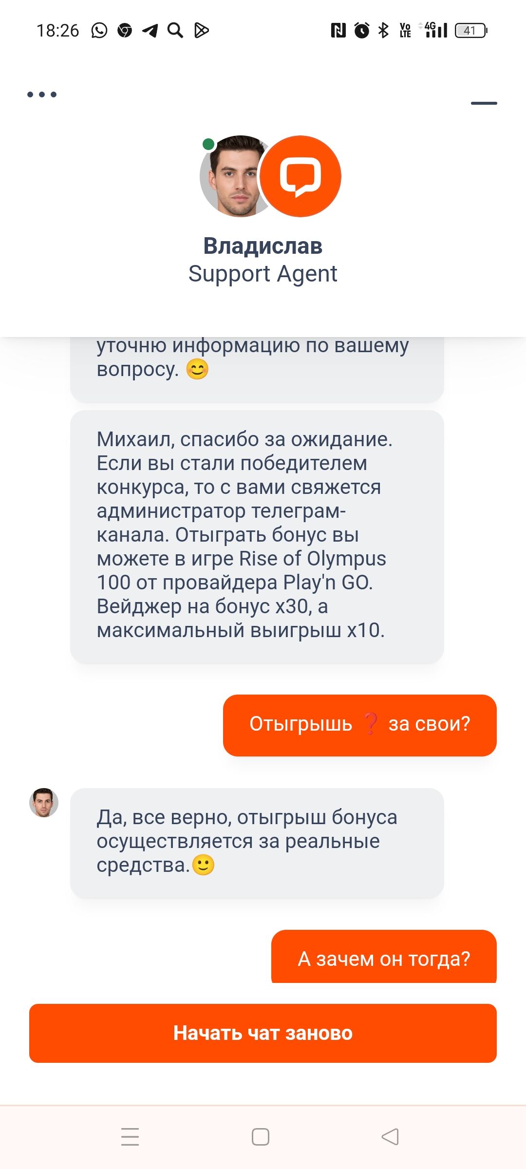 В телеге на Монро в конкурсе на 3000 фриспинов. Я выиграл 100фрих. Любопытно стало на свои или на бонусные отыгрывать. ну и написал менджеру. Он написал что за свой счёт… Бред!!! я ведь выиграл так дайте шанс то.