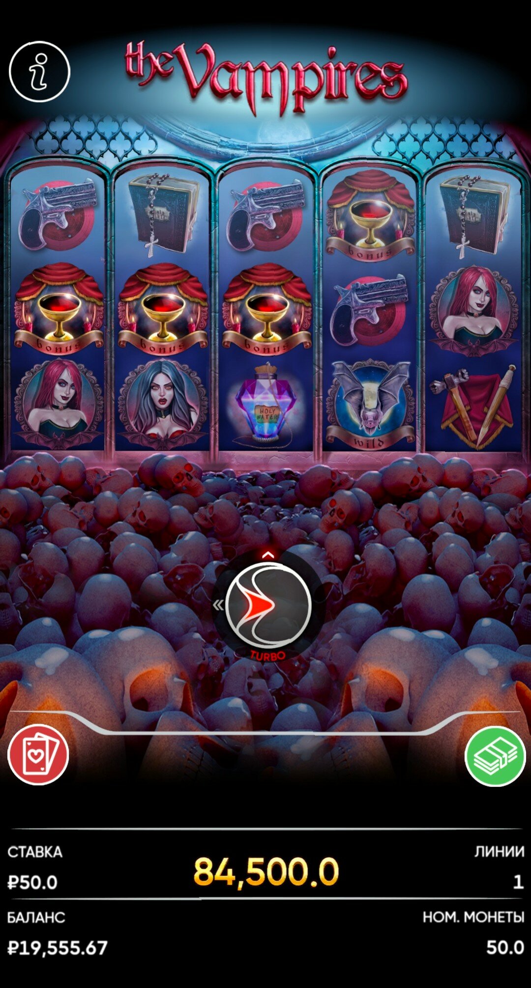 Привет, по разному бывает, от нескольких спинов, до нескольких тысяч спинов))) ну и конечно же я не всегда выигрываю, это же чистый рандом. Конкретно этот занос в сессии где то за 200 спинов выпал, а если сложить все спины сыгранные за неделю в нем, то думаю это не меньше 30 тысяч. Что касается вампиров там шанс выпадения кубков по одной линии где то 1 к 1500