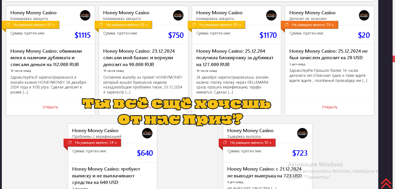 Вот заголовок моего вопроса Казино рекламирует другое казино , суть вопроса в том что некоторые казино спамят на почту с рефками другие проэкты, опять не был опубликован мой вопрос о том что стримеры казино занимаются сбором личных данных игроков включая сэлфи с паспортом как обратится к владельцамказино о том что бы они приняли меры, в отношении своих партнёров, У меня впечатление что ваш сайт который позиционирует себя как нейтральный арбитр целеноправленно покрывает неудобные вопросы к казино, и ещё и по рукам бьёёт тех кто пытается уличить казино в преступлениях совершаемых в отношении игроков