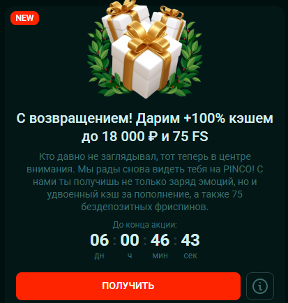 Pinup (pinco) раздает в акциях 75FS в слоте Fortune Craft. ну и + 100% кэш-буст)