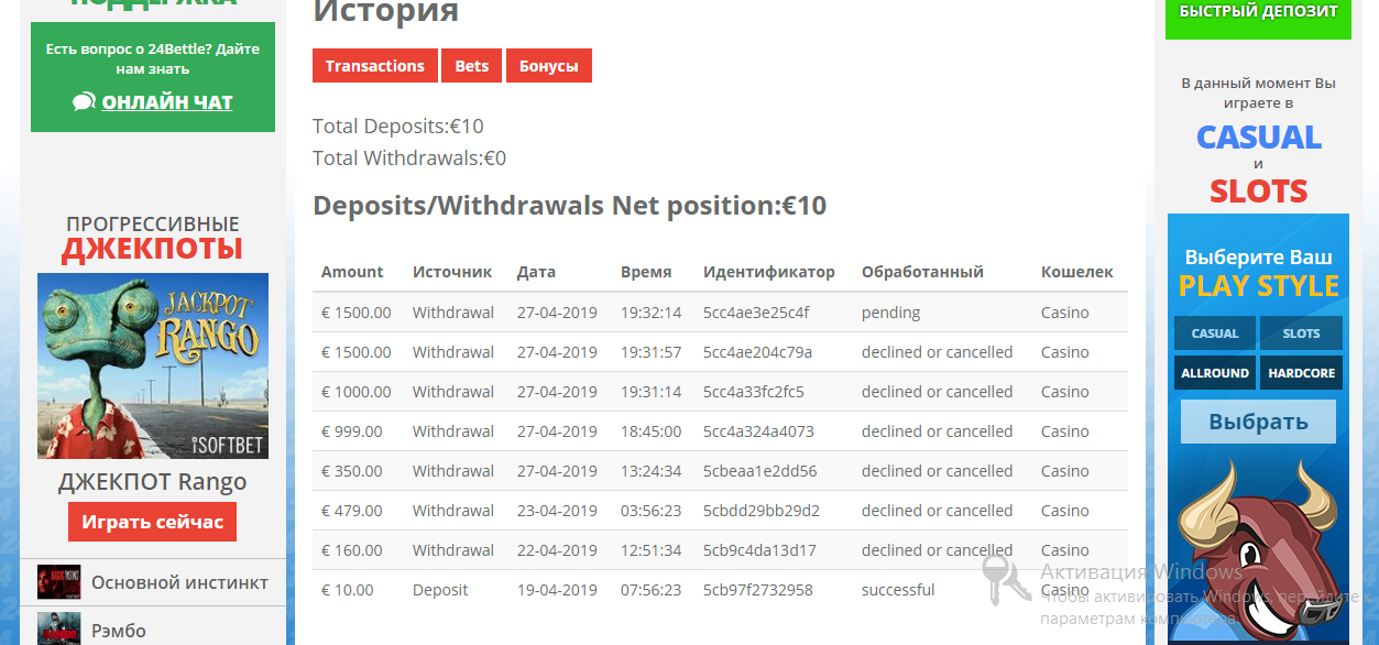 24 бетит 999 поставил на вывод но хз выведут ли на остальное решил поиграть