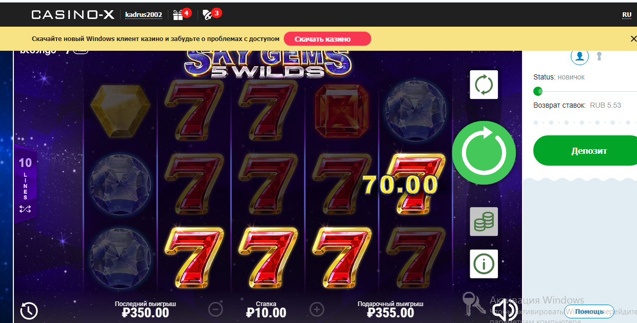 Пздц короче дёпнули с подругой в спин сити 750руб. Поднялись почти до 10к. Скрин тока один. Играли 3 часа примерно без остановок по 40 р по итогу на балансе 8к хотел поставить на вывод а вагер 20к при этом общий был 27к. Ограничений по слотам там нет. Как и статистики игры. Вообщем не играйте там. Мошенники полные