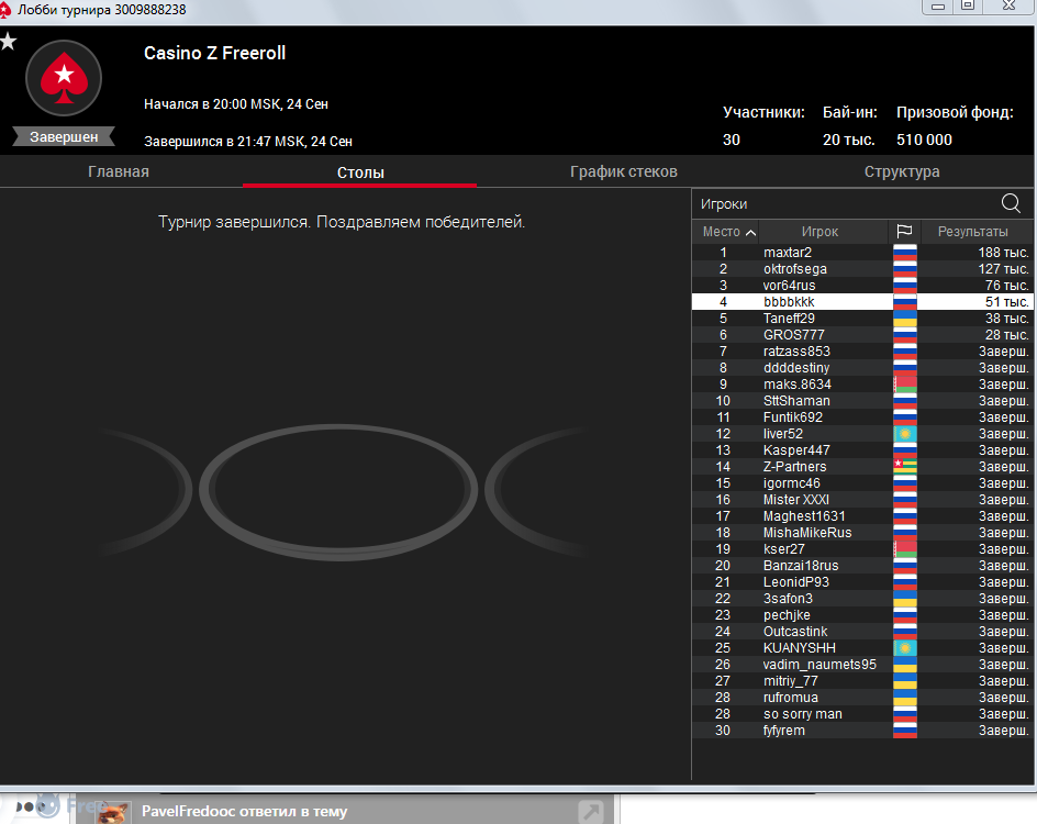 Спасибо за турнир)) хоть пойнты заработал))