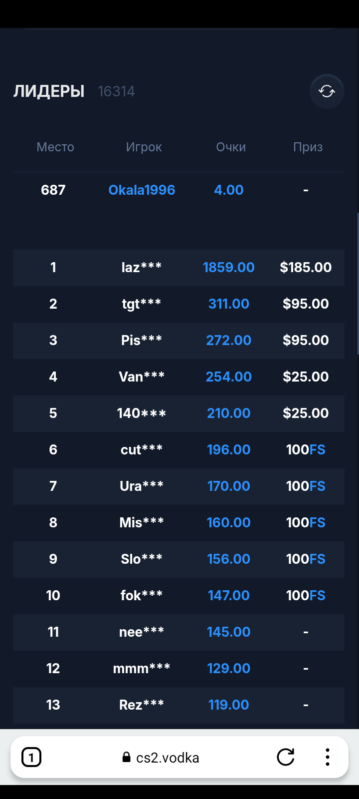 @shultz самые значимые призы только за места в месячных и недельных турнирах, там за максимальный проигрыш и оборот. Но все места занимают стримеры, так как у них бешеные оборотки за счёт фиксы. А в других турнирах копеечки. Был турнир от эндорфины год полтора назад баксов 100 забирал, плюс несколько раз 30 баксов в ежедневных. И 150 спинов по 20 от стримера в турнире.