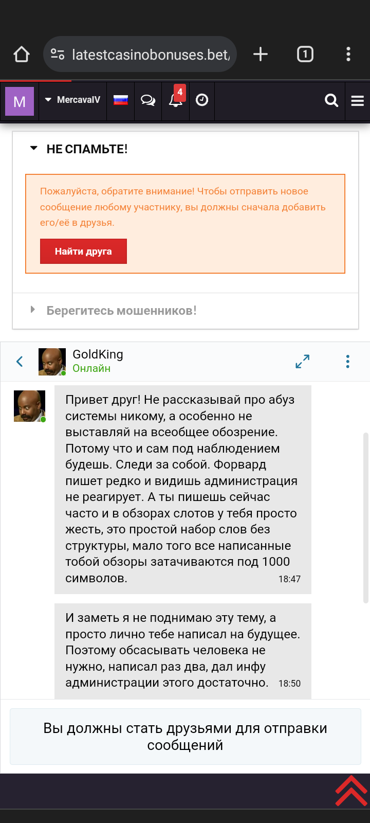 @goldking зато позволил мне в ЛС с угрозами зайти. Почему я должен скрывать, что человек мне открыто угрожает? Что если я не закрою свой рот, то он пойдет жаловать админам