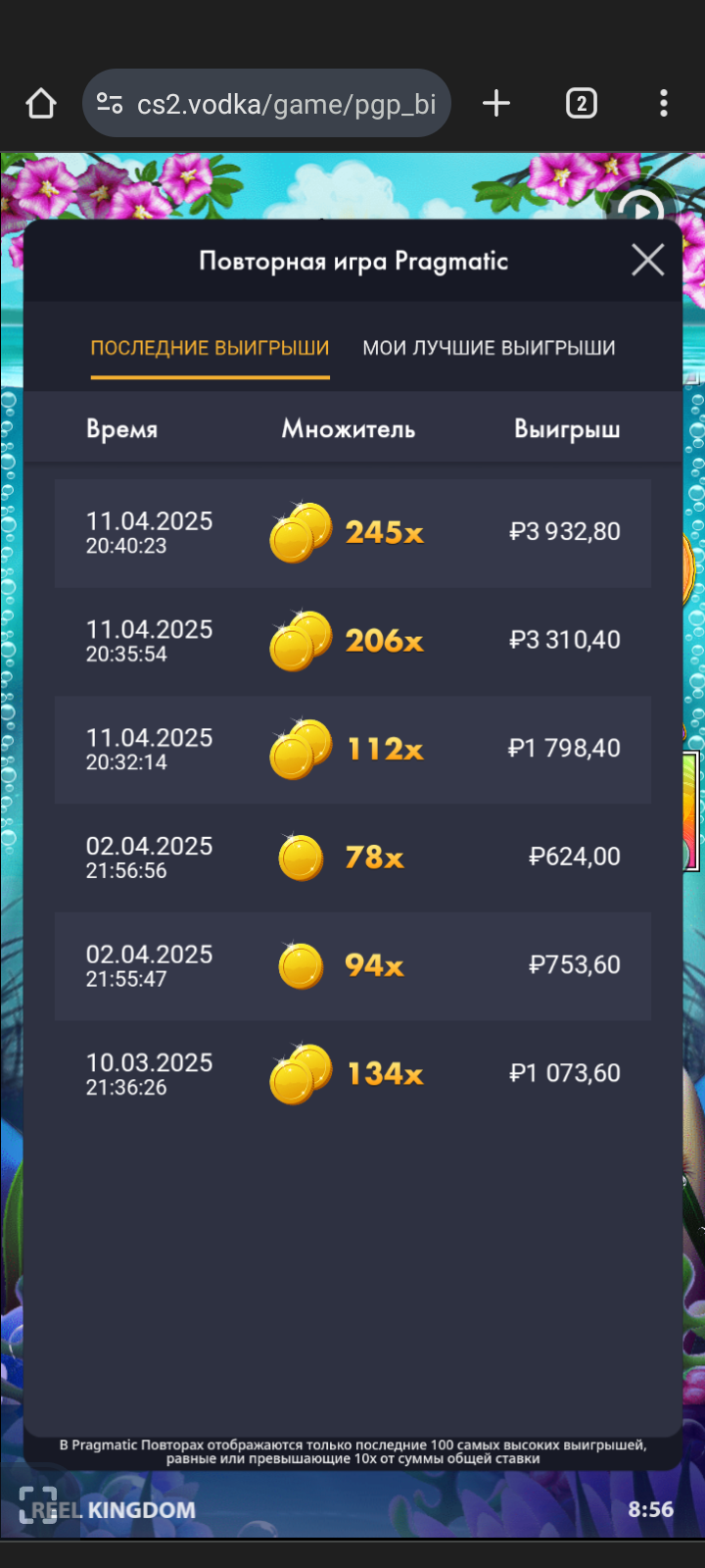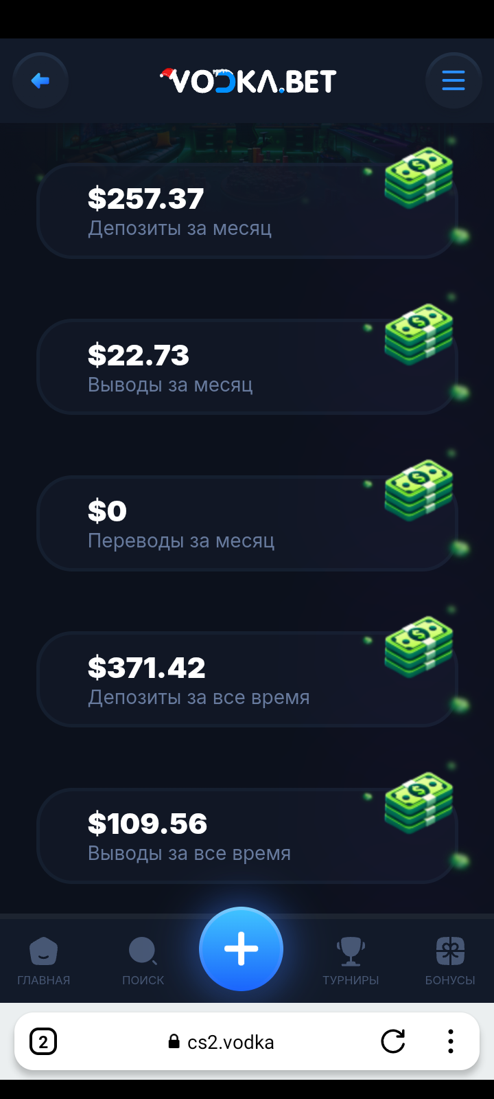 Благодаря Ленину, водка выдала 10к с вагером х1 за нахождение абуза турниров. Вагер отмыл, 5к вывел (к сожалению ничего не играло).