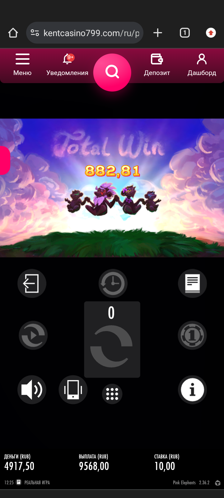 Казино Кент. Слот — Пинк Элефант. Почти х1000.