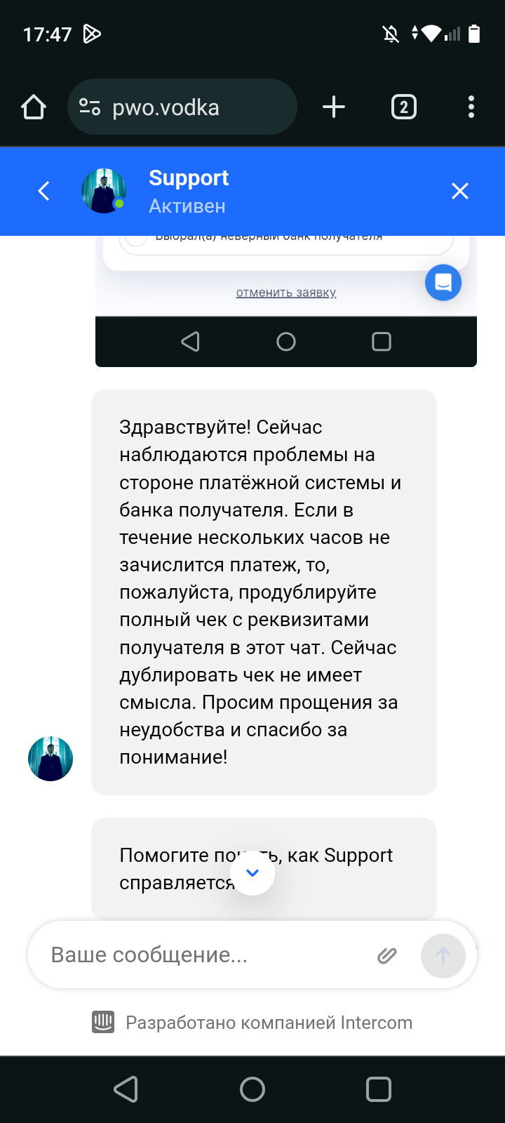 Рекомендую пока воздержаться от депозитов методом сбп в казино водка (может ещё какие), деп не зачислили, платежка саппорт не отвечает