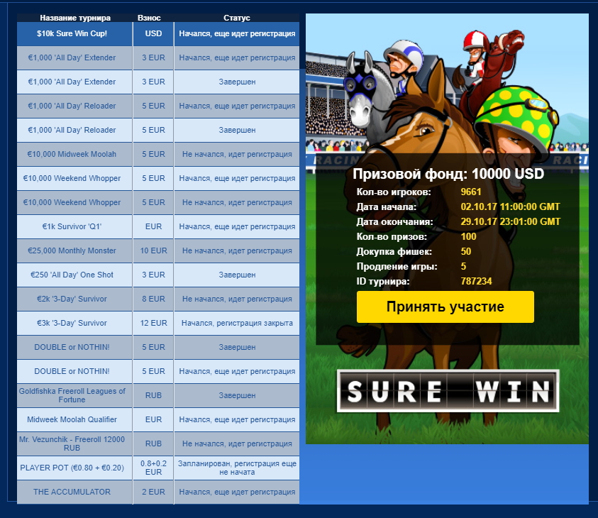 Турнир начался 15.09.2017 19:00:00 MSK
