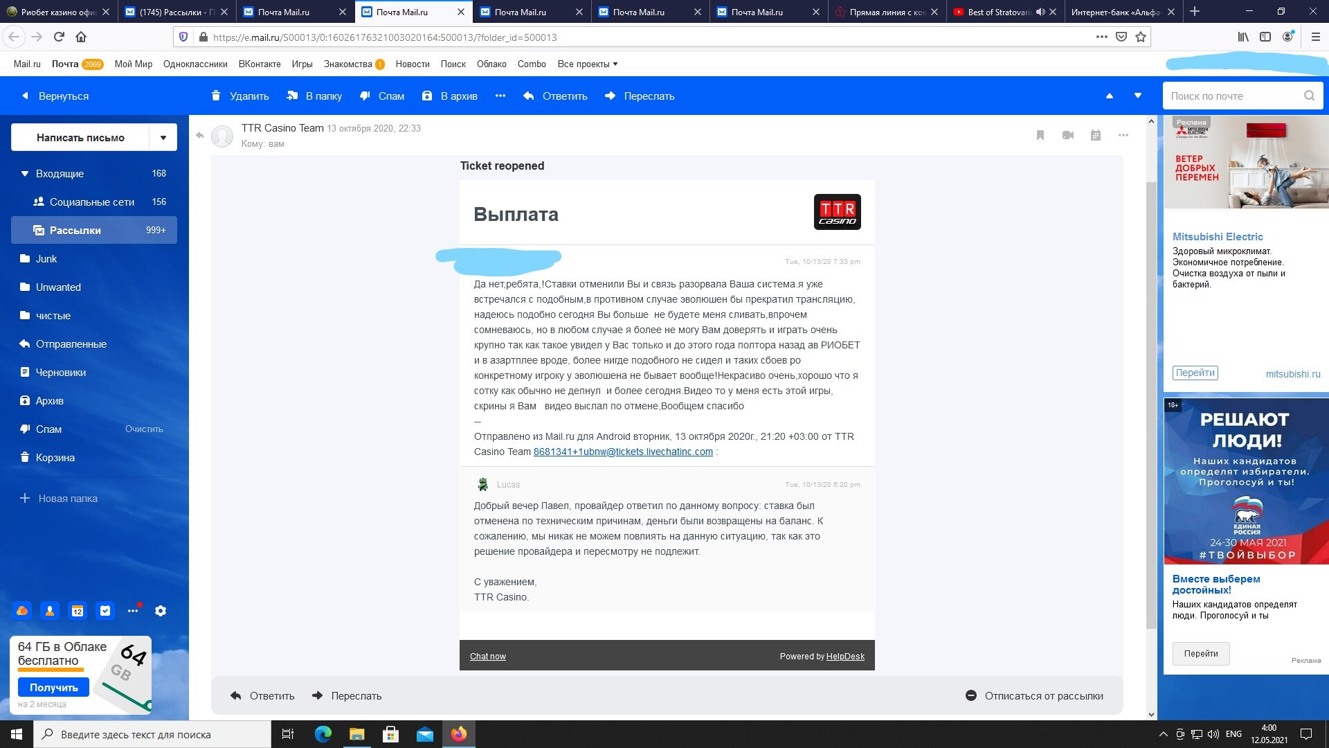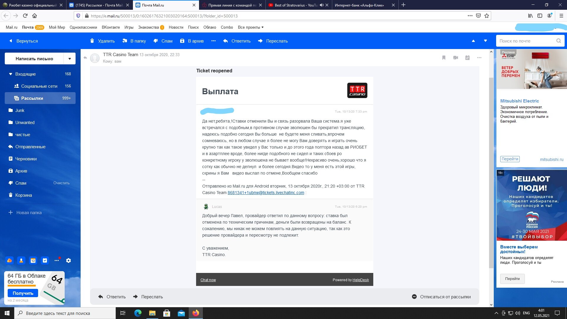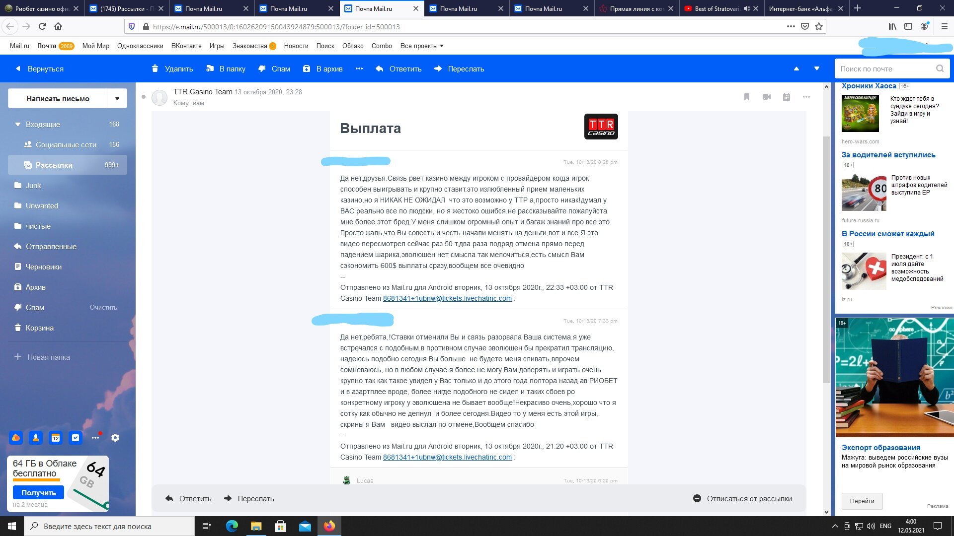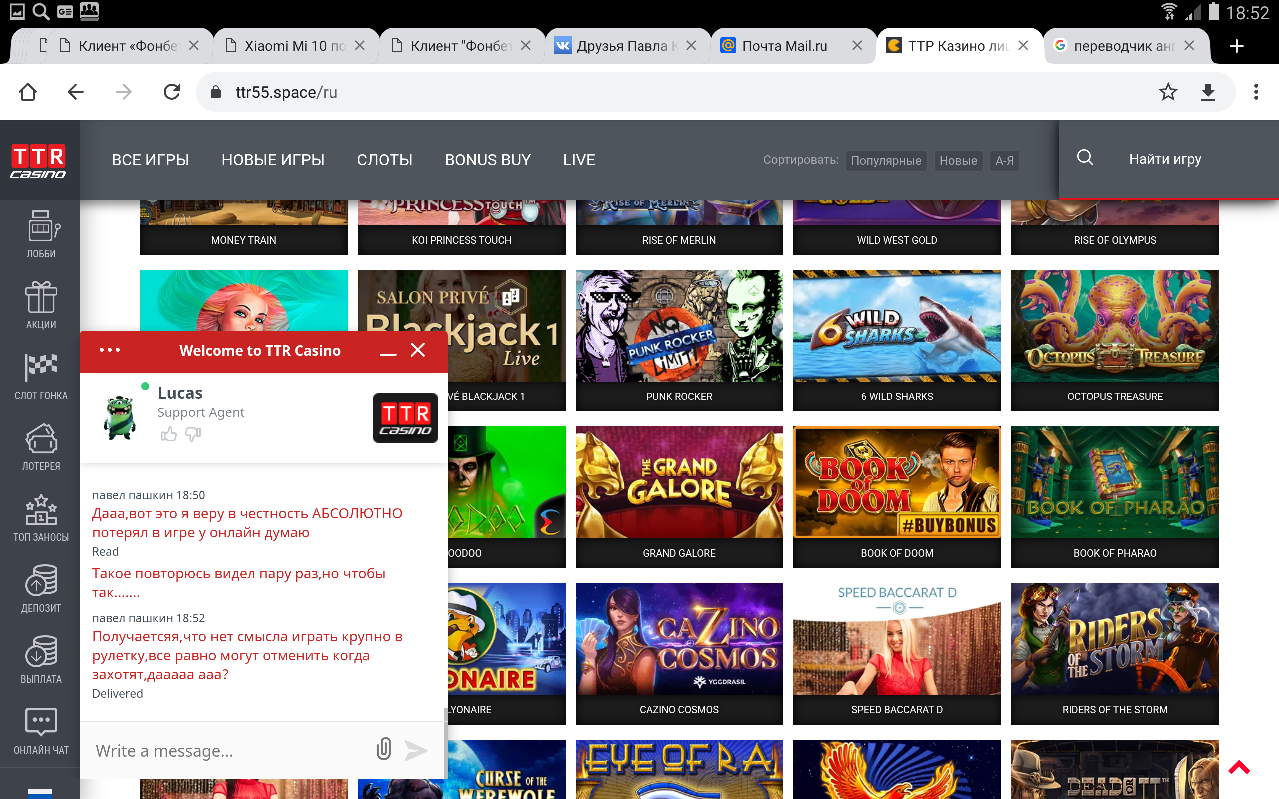 МОГУ ТОЛЬКО ПОРАДОВАТЬСЯ ЗА ЛАТЕСТ И ПОЗДРАВИТЬ ВАС ЛИЧНО!СЧИТАЮ ЭТО БООООЛЬШИМ ДОСТИЖЕНИЕМ!ВОТ СЕЙЧАС ПОИЩУ ВИДЕО И СКРИНЫ ГДЕ МНЕ ТТР КАЗИНО ШЕЙВАНУЛ ДВЕ ОТМЕНЫ СТАВКИ ПОДРЯД В НОМЕРЕ 29 В РУЛЕТКУ ЭВОЛЮШЕН!ТАКОГО БЕСПРЕДЕЛА БОЛЬШЕ НИГДЕ НЕ ВИДЕЛ КРОМЕ РИО НО ТАМ ПЛАТФОРМА ДРУГАЯ И БЫЛО ТО ГОД НАЗАД ПОСЛЕДНИЙ РАЗ.ВСЕГО ТО 10 ЕВРО СТОЯЛО В НОМЕРЕ И СТАВКА ВРОДЕ 4600 В РУБЛЯХ ЗА СПИН (А ИГРАЮ Я КРУПНО ПОВЕРЬТЕ ВИДЕО И СКРИНЫ ВЫШЛЮ КОГДА СКАЖЕТЕ) И 2 ВЫПЛАТЫ ПОДРЯД ЭТО 44 К РУБЛИКОВ ДЕРЕВЯННЫХ!САППОРТ ТТР ТАКТИЧНО ПОСЛАЛ МЕНЯ КУДА ПОДАЛЬШЕ НО ПРИ ЭТОМ ОНИ ЧЕТКО ПОДТВЕРДИЛИ ЧТО ХА-ХА МИЛЛИАРДНЫЙ ПРОЕКТ ЭВОЛЮШЕН ЛИЧНО!А НЕ ОНИ ТТР КАЗИНО ОТМЕНИЛ ДВА!РАЗА ПОДРЯД МОИ СТАВКИ ПРЯМО ПОСЛЕ ПАДЕНИЯ ШАРИКА В НОМЕР 29 А САМ!АНДРЕЙ ЭТОТ ВЕЛИКИЙ ЧЕЛОВЕК КОТОРОГО МЫ ВСЕ УВАЖАЕМ ЗА СПРАВЕДЛИВОСТЬ ДАЖЕ СПЕЦИАЛЬНОЕ ВИДЕО НА ЮТУБЕ ВЫЛОЖИЛ ГДЕ СКАЗАЛ ЧТО Я НЕУМНЫЙ ЧЕЛОВЕК ЕСТЬ И ЗАФЛУДИЛ ЕГО КАНАЛ(РАЗУМЕЕТЬСЯ ВСЕ МОИ КОМЕНТЫ ОН УДАЛИЛ ЧТОБЫ ДРУГИМ БЫЛО НЕ ПОВАДНО)ВООБЩЕМ Я ИЩУ ВИДЕО НО СКРИНЫ 100 % Я С НЕГО ВСЕ!СНЯЛ И ОНИ В ОТДЕЛЬНОЙ ПАПКЕ ЧЕТКО ПЛЮС ПЕРЕПИСКА С САППОРТОМ И МОЙ ДИАЛОГ С АНДРЕЕМ В ЕГО ЮТУБ КАНАЛЕ!ВОТ И ПОСМОТРИМ КАК УВАЖАЕМЫЙ МНОЙ (БЕЗ ПРЕУВЕЛИЧЕНИЯ!СЧИТАЮ ЧТО ЛАТЕСТ ЭТО ОЧЕНЬ ХОРОШО ЧТО ЕСТЬ!)ПОМОЖЕТ МНЕ РЕШИТЬ КИДОК ГОСПОДИНА ТТР В ОТНОШЕНИИ МЕНЯ.