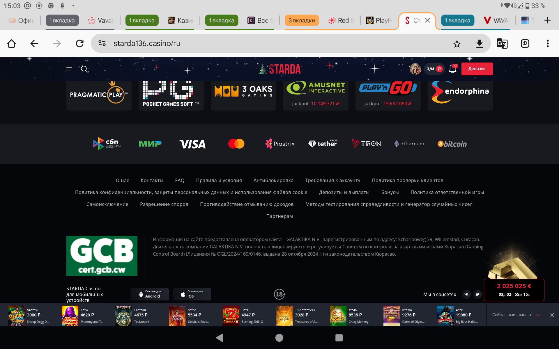 Как ты помнишь,я их гнобил за дело и писал на них жалобы ещё в 19—20-21-22г.г и сейчас не особо восхищаюсь,т.к в минусе там 74.000$,просто я должен признать тот факт,что там люди с мозгами работают и они провели оч серьезную работу и подняли уровень проекта в десятки раз с того шлака,коим были при открытии.Но даже сейчас там игры нет,но факт,у них все четко и по выплатам и по вагерам и по бонусам и по софту и вообще по всему.Все на лицо!Конкурентов нет у них сейчас!Разве Джой рядом с иксом на пятки немного наступают.