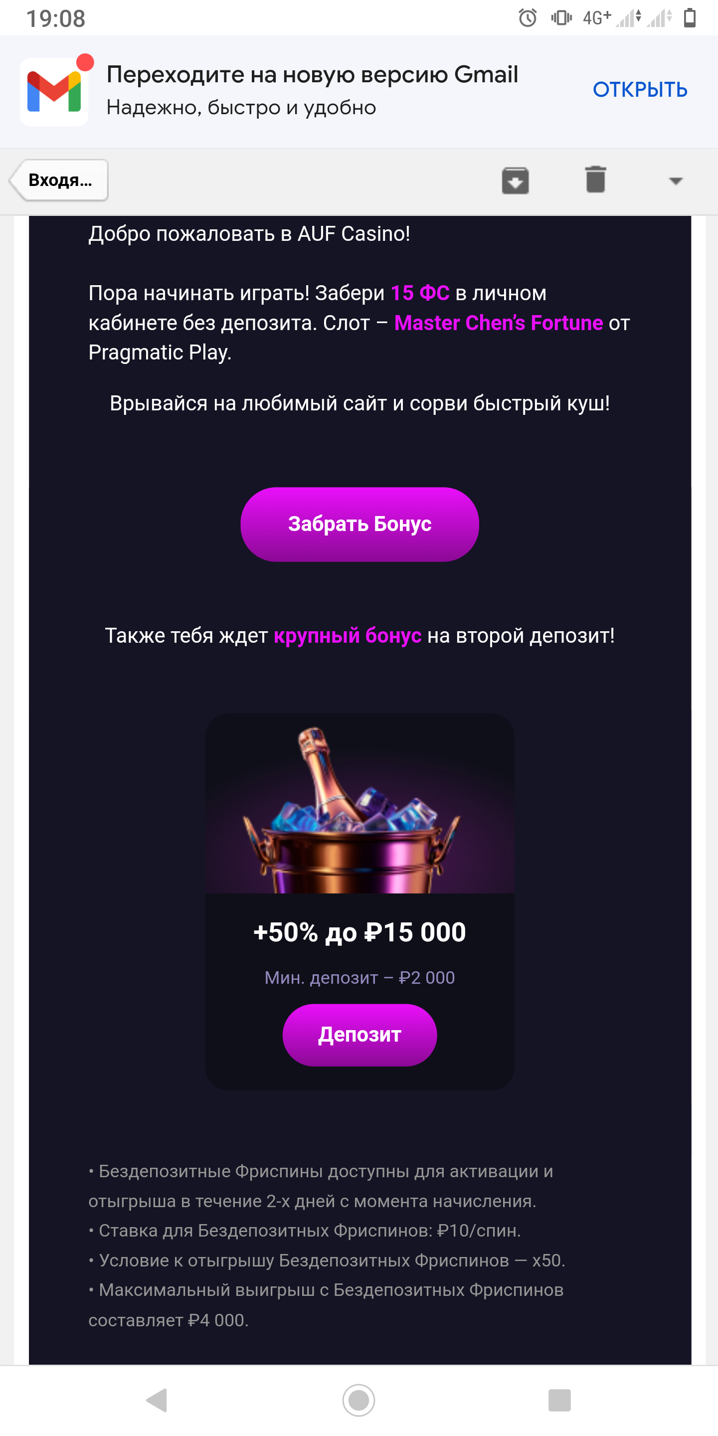 auf прислал 15фс за бонусы проверяйте