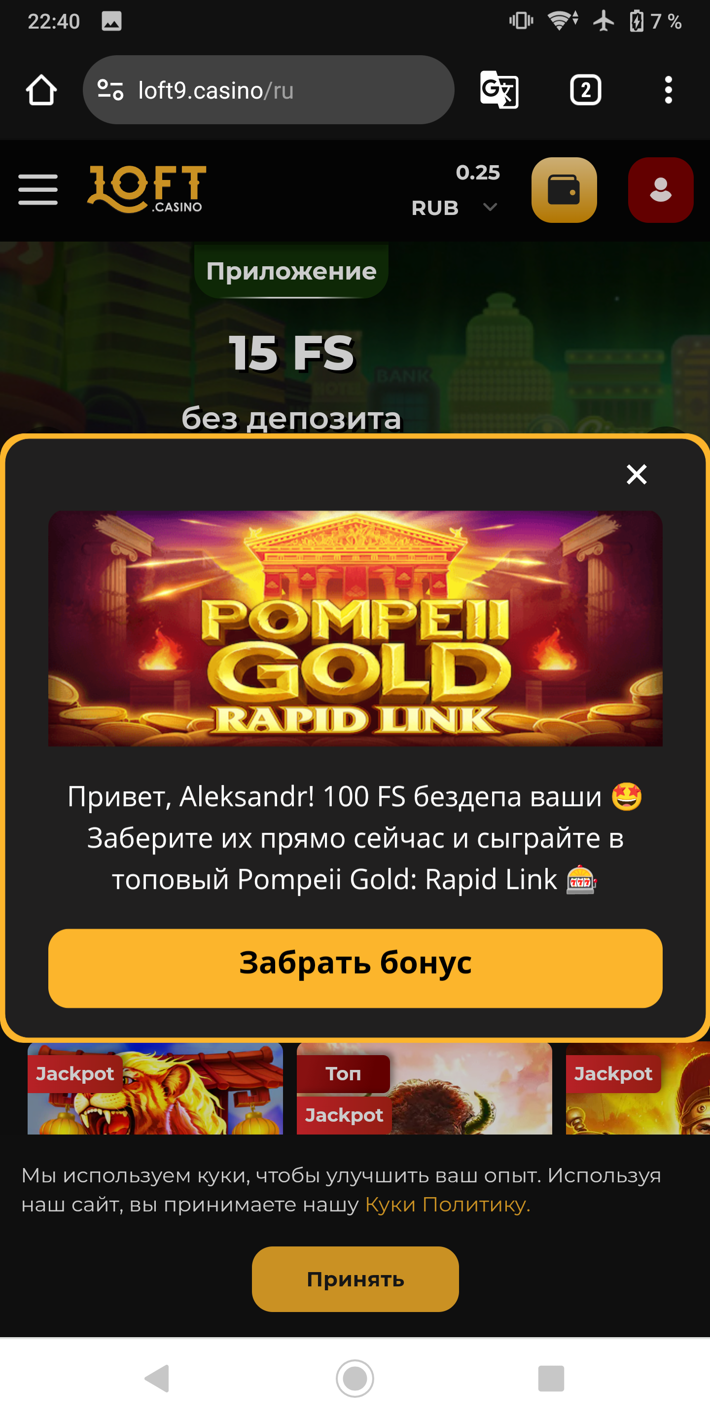 сейчас loftcasino начислили 25фc вагер 15