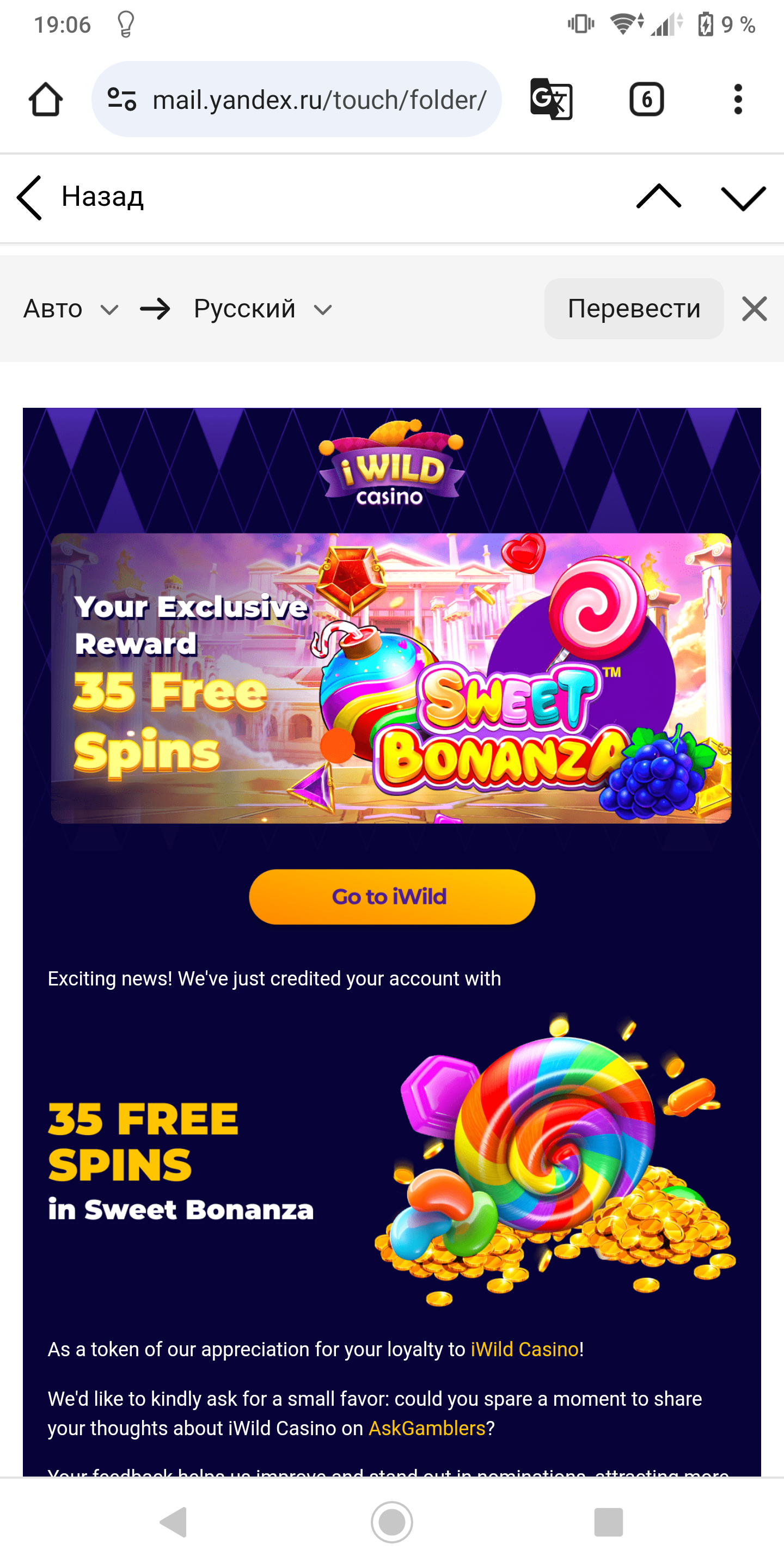 gangstacasino прислали бездеп (активация в чате) проверяйте почты