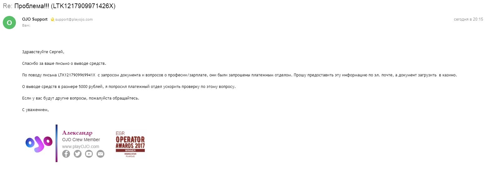 НО… запрос на верификацию пришел ВМЕСТО обещанного ими решения возникшего НА ИХ СТОРОНЕ сбоя…